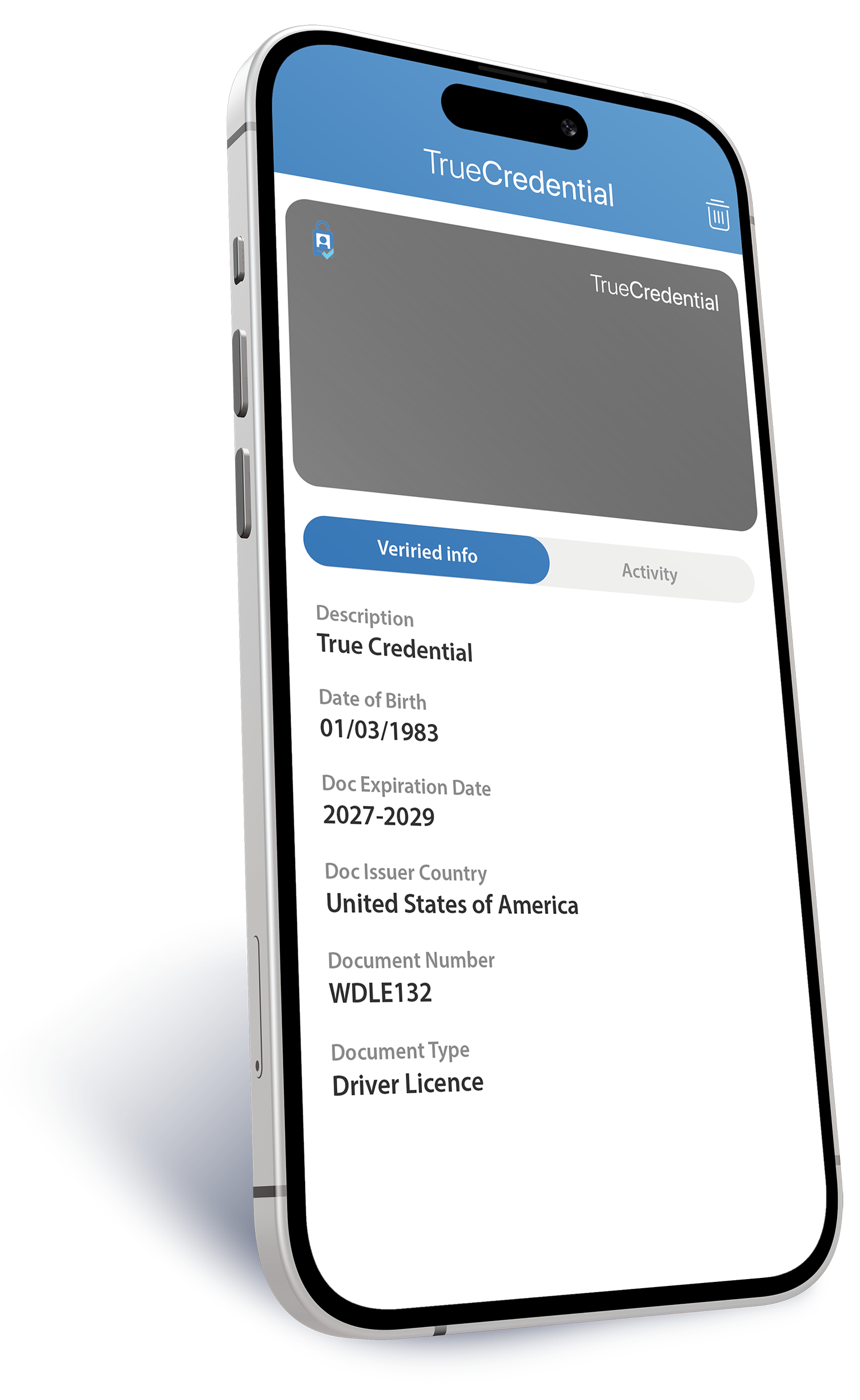 These Identity based documentations and identity claims are all verifiable electronically via TrueCredential with a much higher level of security and privacy. Following verification, they are stored in a secure digital wallet on the user’s electronic device, allowing you to present them to whomever you need to, whenever you need to.