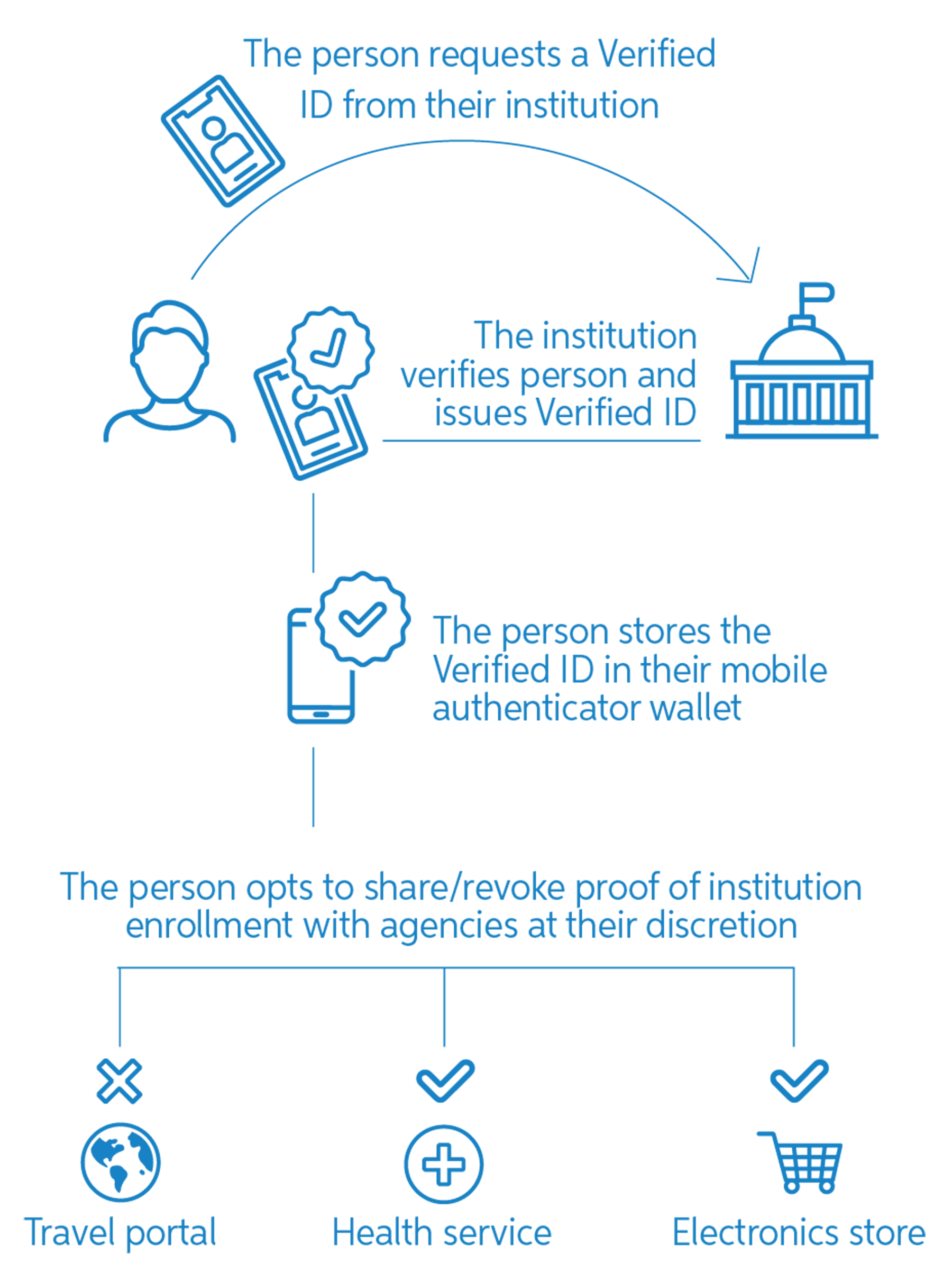 deploy verifiable identity across your organization in hours, not weeks. It’s stored in your digital wallet, eliminating redundant registration and verification processes.